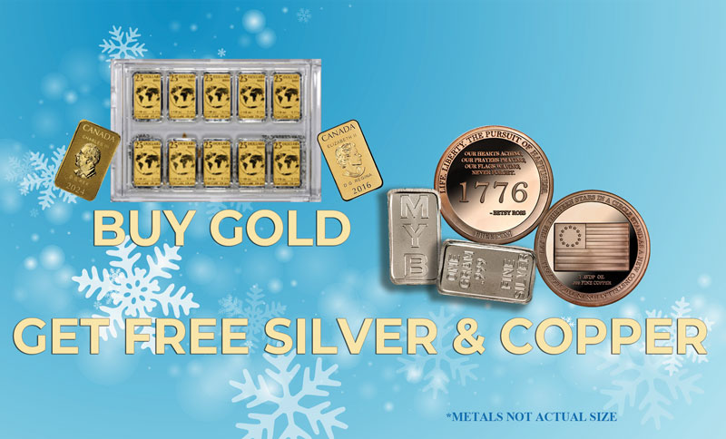 This week, Goldline is extending last week’s Deal of the Week due to its popularity and demand. Receive free silver AND copper with your qualified purchase of the client popular legal tender gold bar card.