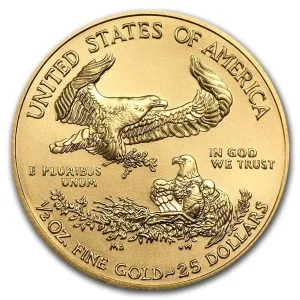 Since its inception in 1986, the 1 oz American Eagle gold coin is the official gold coin from the U.S. Mint. It has a face value of $50 US Dollars and contains 91.67% gold. The remainder of the coin is comprised of other composite metals which give it a hardness and keep it from scratching.